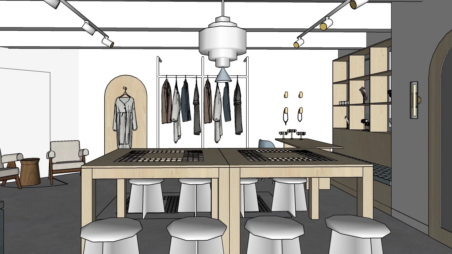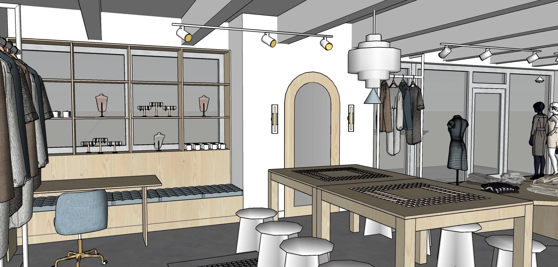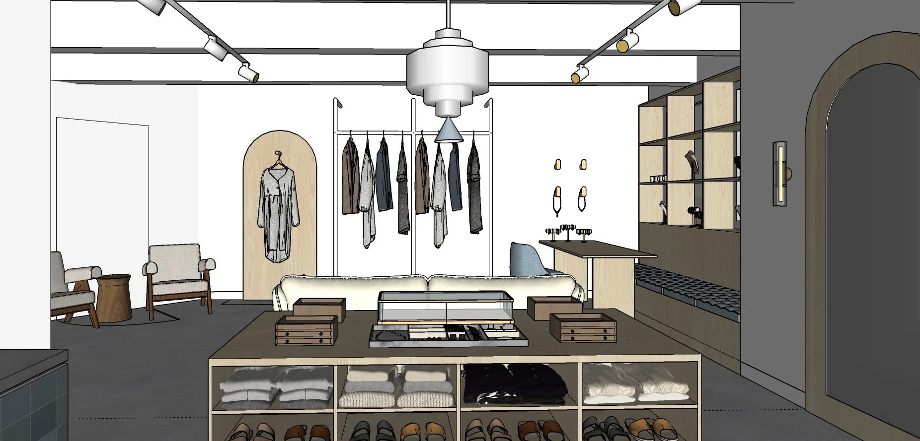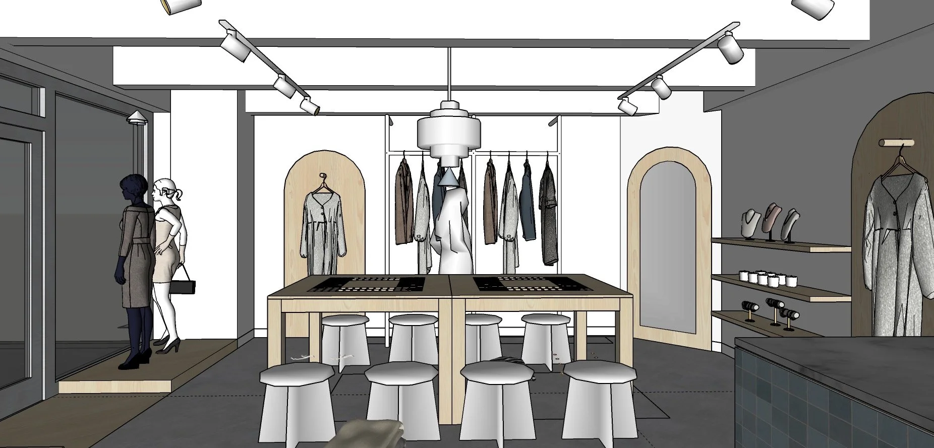 Finishes and furnishings draw from the Austin flagship’s material palette—ash wood accents, sculptural arches, and coastal textures—while adapting to the Midtown context. The refreshed space features refinished concrete floors, white ceilings for height and brightness, new chandeliers and sconces, and a custom ash wood platform and cash wrap. Beyond retail, the space serves as an experiential hub for permanent jewelry and charm parties, aligning the design with the boutique’s lifestyle-focused brand. Opening mid-November 2025.