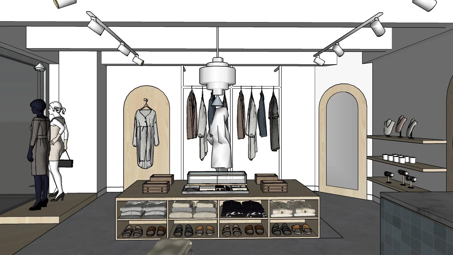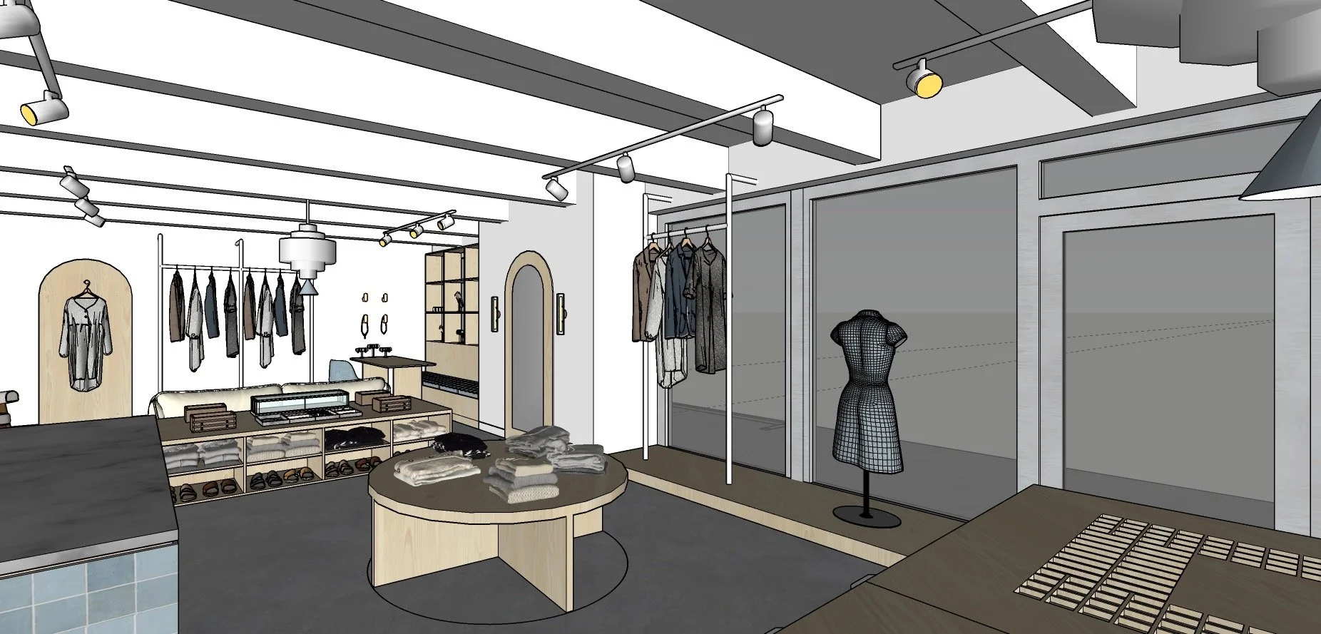To unify the space and enhance its functionality, Gardner Studio and Omō reimagined the layout, creating a clean rectangular retail zone at the front with natural light, and a series of custom arched dressing rooms and a concealed storage area toward the back.